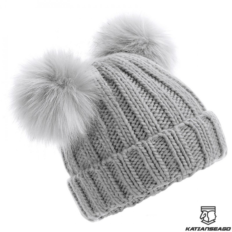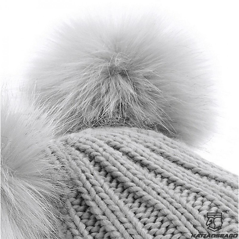 KATIANSEAGO WOMENS/LADIES FAUX FUR DOUBLE POP POM BEANIE