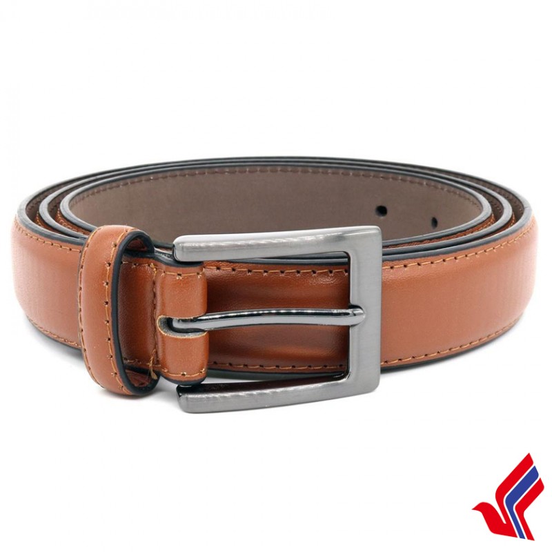 MENS SQUARE BUCKLE EDGE STITCHED LEATHER BELT