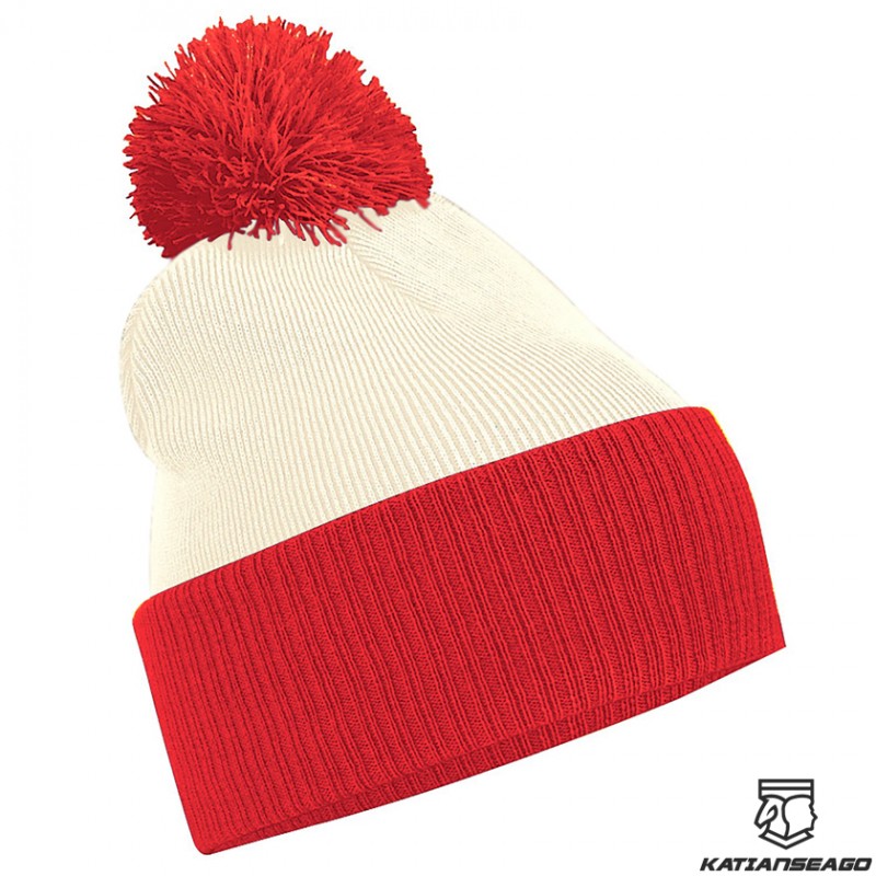 • Contrasting pom pom and cuff.